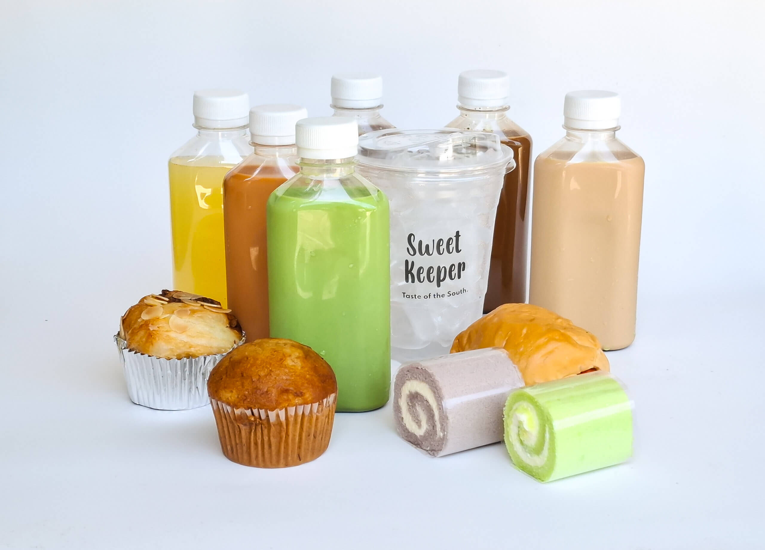 เบเเกอรี่ = เค็กกล้วยหอม, เดนิสอัลมอนด์, แยมโรล, ขนมปังไส้กรอก, ขนมปังถั่วแดง, ขนมปังสังขยาใบเตย